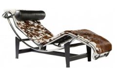 Structure en tube d'acier chromé aux courbes originales. Structure laquée noir mat, fixation à trois écrous, tubes de forme ovale. Inclinaison du dossier aisément réglable sur le piètement. Repose-tête garni de plumes de duvet et de mousse. Assise garnie de mousse. Revêtement en cuir de vachette.