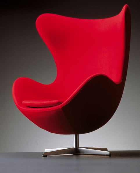 L’Egg chair - "fauteuil œuf" - a été dessiné par Arne Jacobsen pour le hall et les zones de réception du Royal Hôtel de Copenhague. Le fauteuil Œuf incarne à la perfection son idéal du "design total", avec ses formes toutes en rondeur. L'Œuf est le fruit d'une technique novatrice, que Jacobsen a été le premier à utiliser : une mousse très dure sert d'ossature à la coque, rembourrée et recouverte de tissu ou de cuir. Son ambition était de créer un fauteuil à l'intérieur duquel une sphère d'intimité se crée quand bien même celui qui s'y assoit se trouve dans un hall d'hôtel bruyant. L’Egg est l'incarnation même du fauteuil lounge, aussi à l'aise dans un espace privé que public. L'Œuf est disponible dans une large gamme de tissus et de cuirs, toujours accompagné du pied en étoile en aluminium poli satiné.
